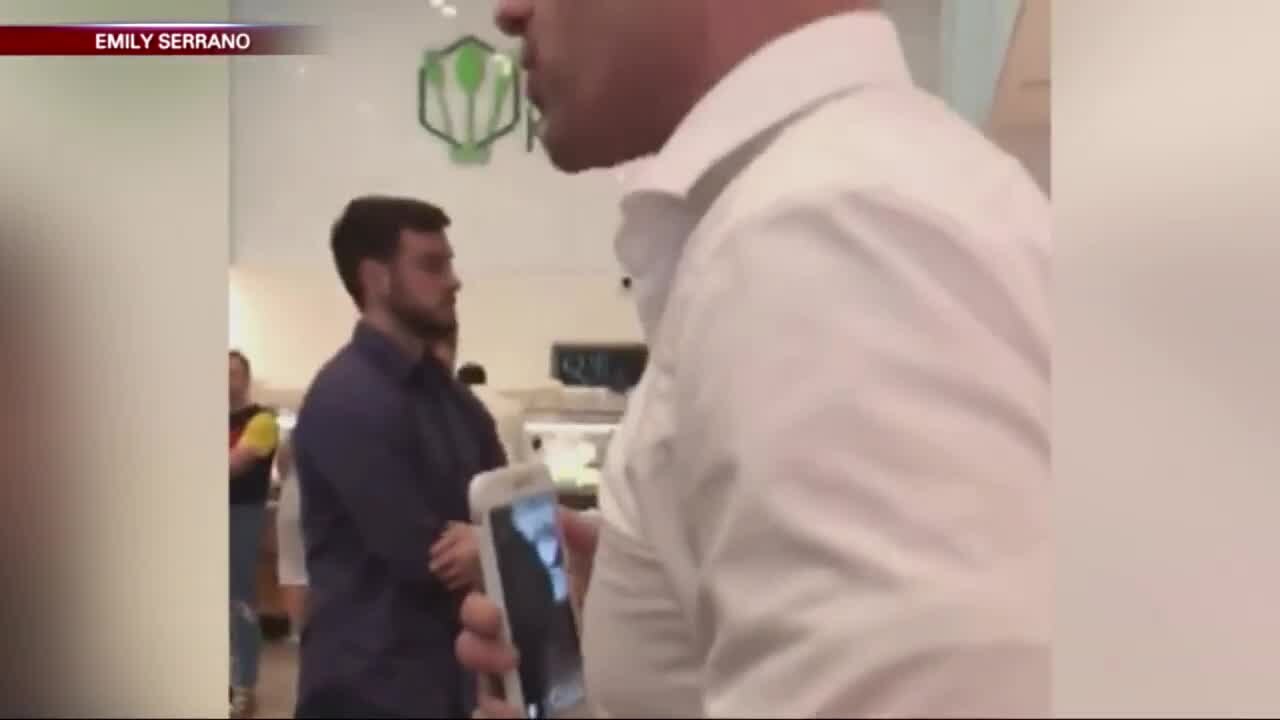 A man identified as a New York lawyer went on a racist tirade Tuesday at lunchtime at Fresh Kitchen on Madison Avenue at 39th Street in Manhattan. A bystander recorded the incident on a camera phone. (Courtesy of Emily Serrano)