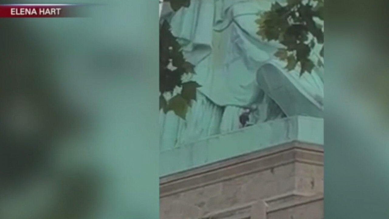 Statue of Liberty protesters, climber