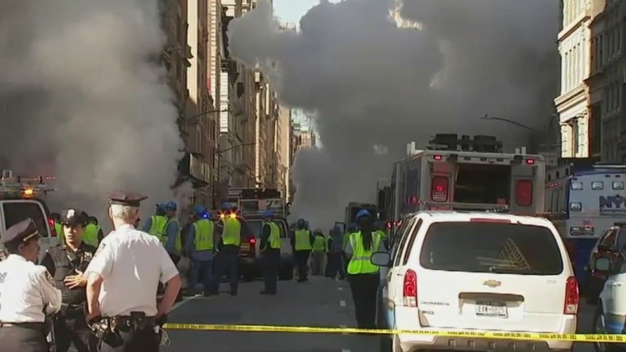 First responders suited up in heavy-duty hazmat gear to go into the so-called hot zone--the immediate vicinity of a steam pipe explosion in Manhattan. The burst sent a massive plume of white steam 10 stories into the air, spewing asbestos-contaminated debris onto the streets.