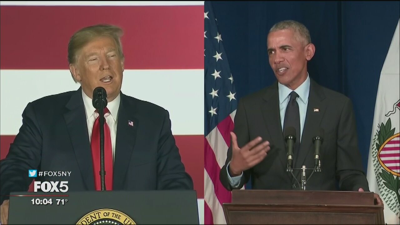 President Obama pointed the finger at President Trump on a whole host of issues, including healthcare and the Paris climate accord. But Trump fired back, saying the speech put him to sleep.