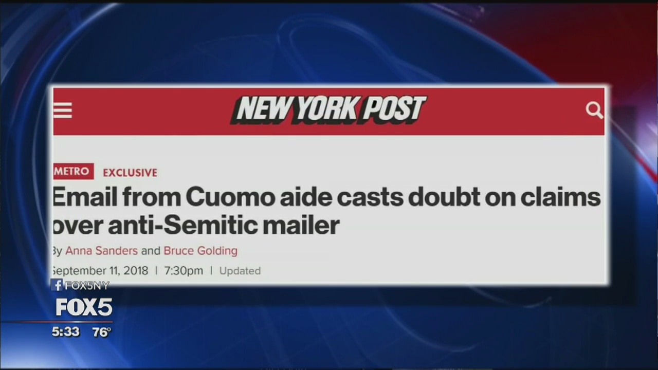 New York Gov. Andrew Cuomo's campaign says a campaign worker created a mailer questioning Cynthia Nixon's support for Jewish people. The widely condemned flier came out days before Thursday's Democratic primary matchup between Cuomo and Nixon, a longtime activist and former "Sex and the City" star. It says Nixon opposes Jewish school funding, supports boycotts of Israel and is silent on rising antisemitism.