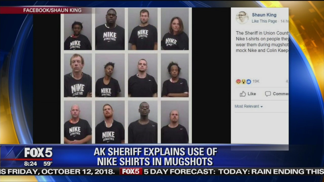A sheriff is responding to complaints after people were given Nike shirts to wear in mugshots.