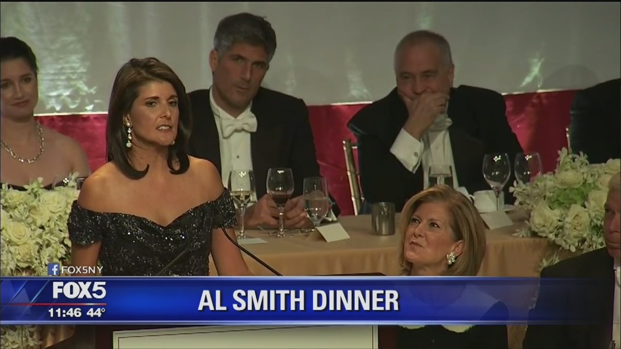 United Nations Ambassador Nikki Haley gave the key note speech Thursday night at the annual Alfred E. Smith Memorial Foundation Dinner in Midtown Manhattan.