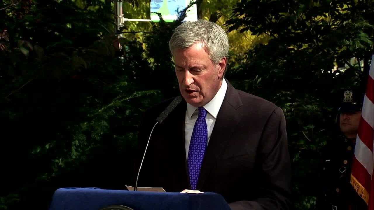 Mayor Bill de Blasio raced up to the lectern to apologize that the ceremony ended without reading the names of the eight victims of the truck attack.
