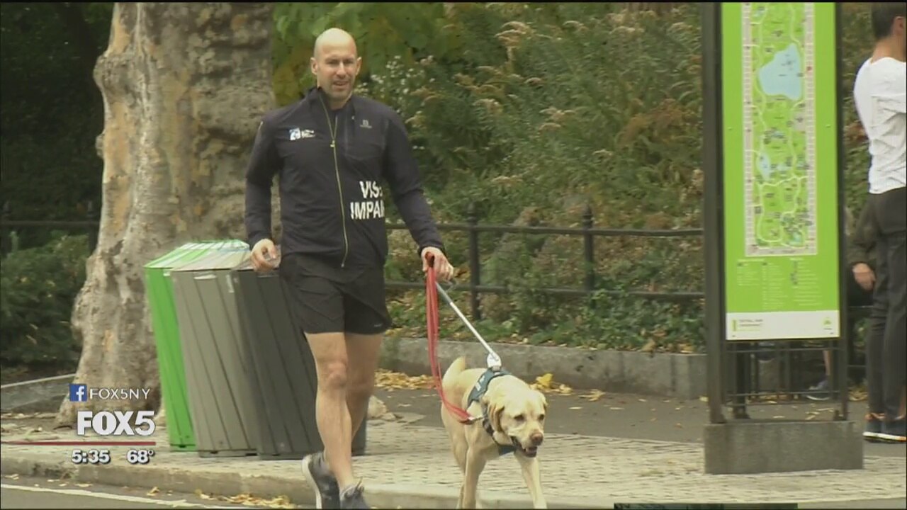 Thomas Panek, 48, had to stop running in his 20s when a degenerative eye disease took away his sight. He tried to continue but he'd get hurt. But he eventually got back to running. His guide dog, Gus, is usually by his side.