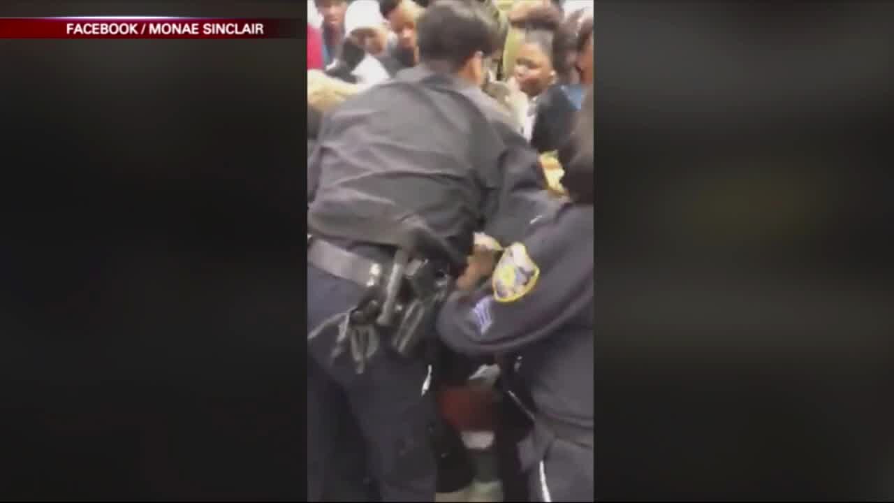 Officials are investigating the circumstances of this video showing cops trying to pull a baby from his mother's arms as she was dragged on the floor in a food-assistance center in Brooklyn.