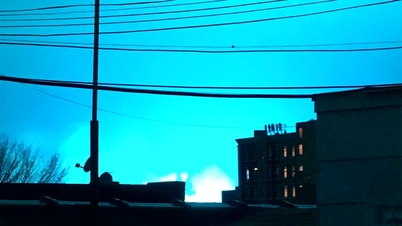 Residents of Queens reported hearing loud bangs and seeing a very bright blue light flashing on the skyline Thursday night. (Courtesy of Erin Nau, Manish Chadha, Deirdre O'Sullivan)