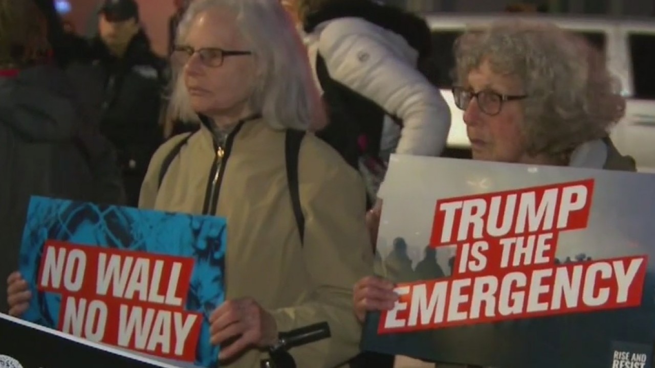 Demonstrators around the country are protesting President Trump's declaration of a national emergency on the southern border.