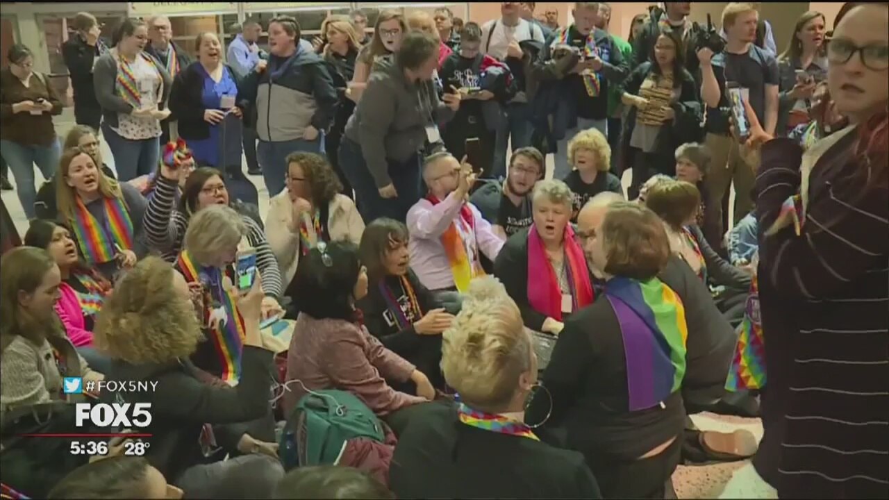 Delegates at a crucial conference voted to strengthen the faith's divisive bans on same-sex marriage and ordination of LGBT clergy.