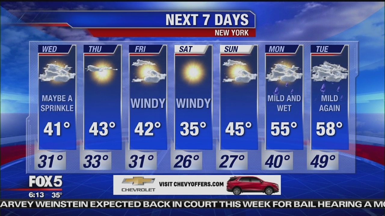 Expect a mostly cloudy sky today with maybe a sprinkle here and there... especially to the northwest. Highs will be in the lower 40s. The rest of the week should be much quieter, but this weekend will be quite cold at times.