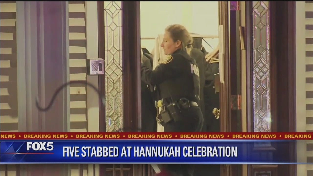 Five people were stabbed inside a rabbi's home on Saturday night.
