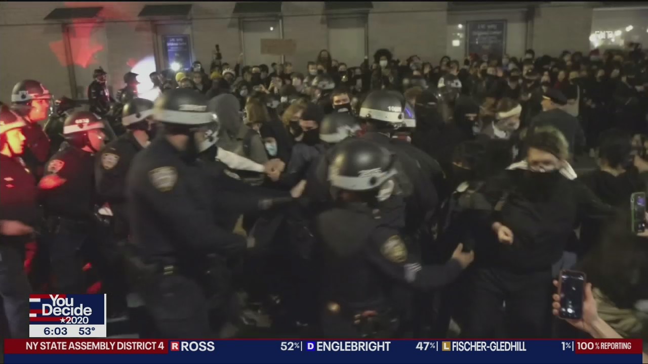 The NYPD made dozens of arrests after violent protests in Manhattan on Wednesday night.