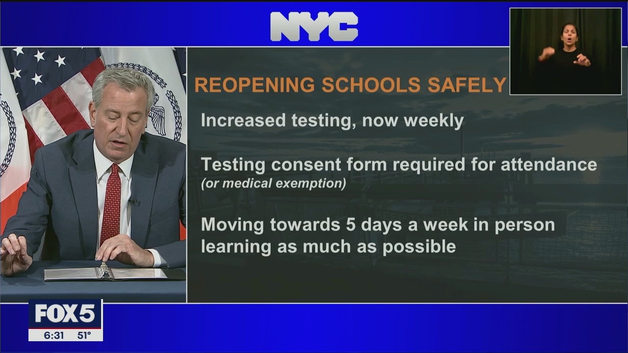 Mayor Bill de Blasio and Schools Chancellor Richard Carranza laid out their new plan to reopen New York City?s public schools on Sunday.