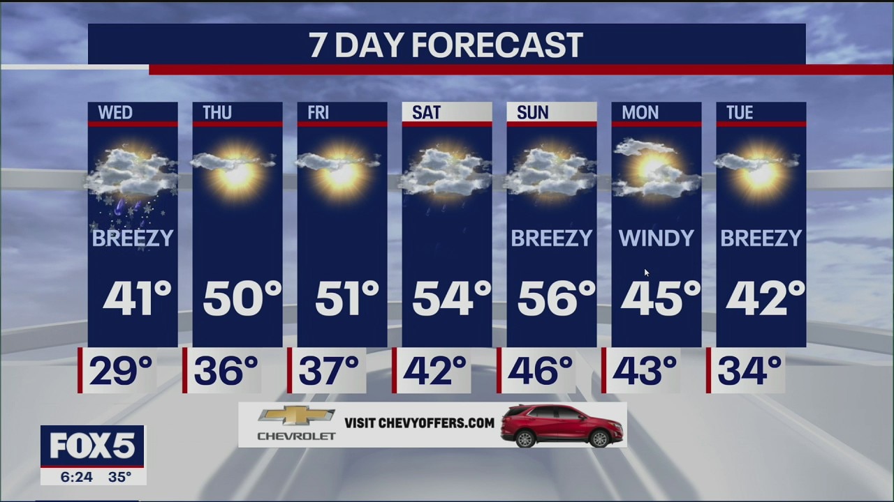 Nick Gregory has the weather forecast. Wednesday will be breezy and chilly with lots of clouds along with some snow and rain showers. Thursday and Friday will warm up a bit as sunshine returns. Lots of clouds will be back Saturday with the threat of showers later in the day. Showers stick around Sunday.