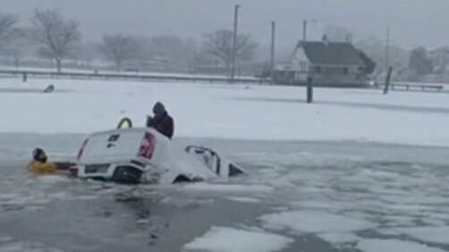 Several firefighters from the Stamford Fire Department speak about the daring and dangerous rescue they carried out in the icy waters of an inlet from the Long Island Sound.