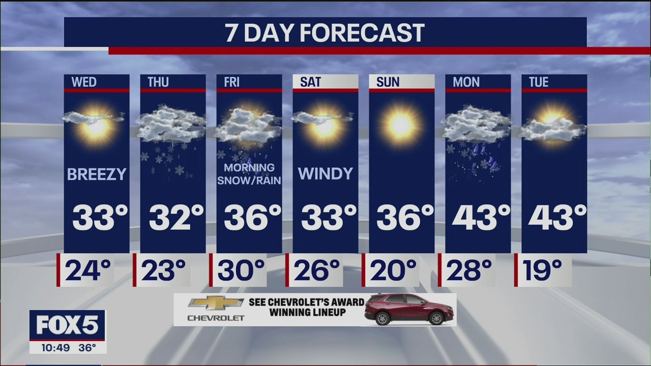 Nick Gregory says Wednesday will be much colder despite sunshine; snow arrives Thursday; snow and rain may still be around Friday morning.