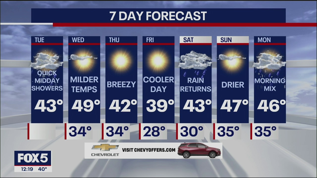 Meteorologist Audrey Puente says rain is falling across New York City. Areas north and west are seeing snow.