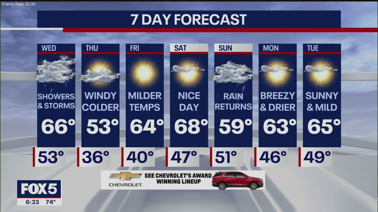 Audrey Puente says showers and thunderstorms move in on Wednesday; Thursday will be windy and colder; mild temperatures return on Friday.