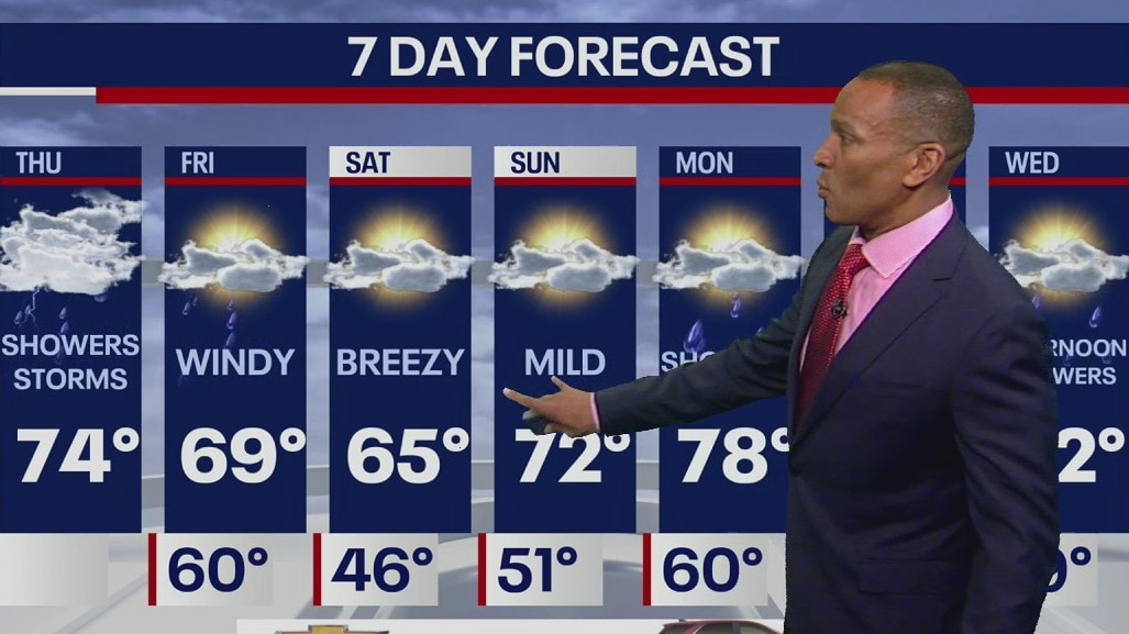 Meteorologist Mike Woods says expect a high of 74 degrees today with clouds, showers and storms for some parts of the region.