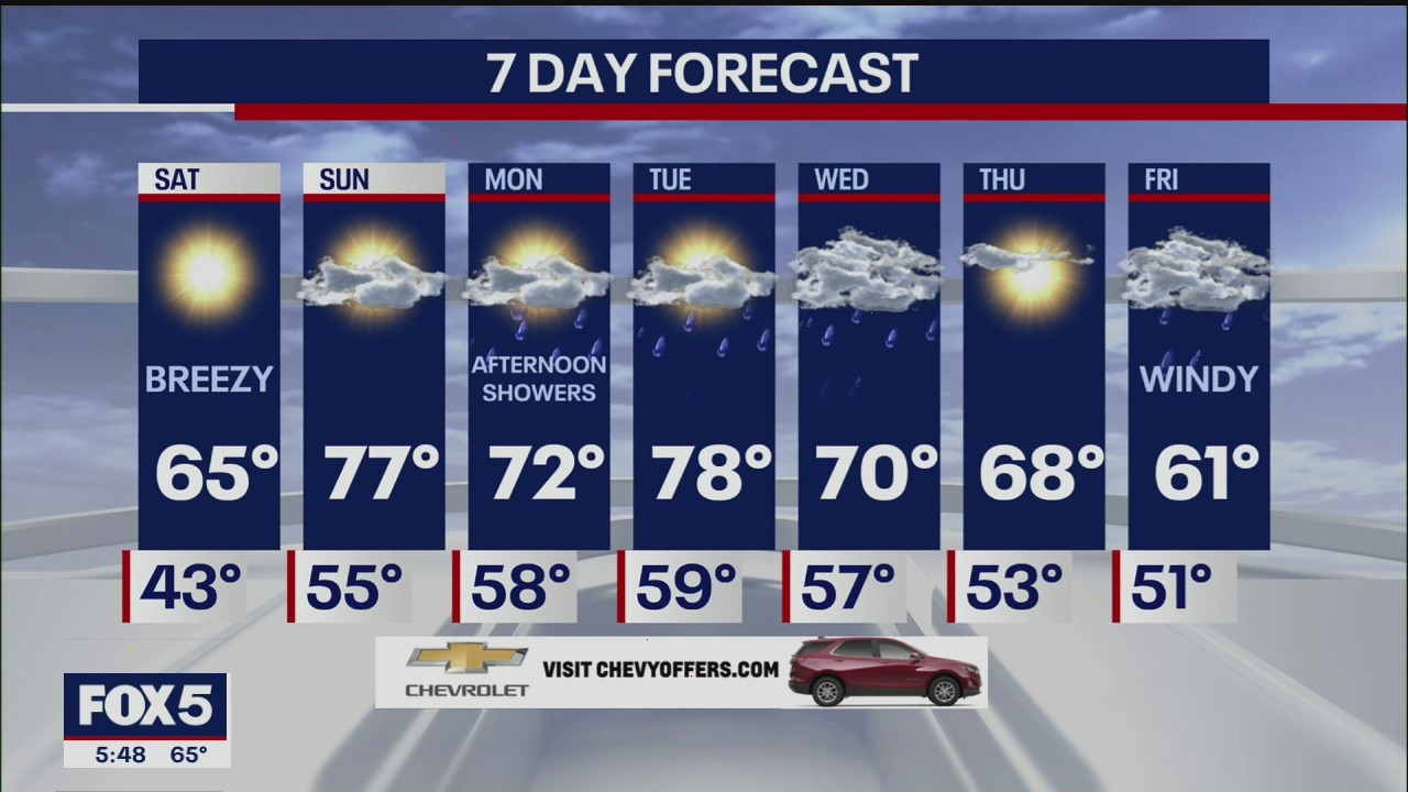 Nick Gregory has the weather forecast. Saturday will be sunny and breezy with highs in the mid-60s. Sunday will be partly sunny with highs in the high-70s.
