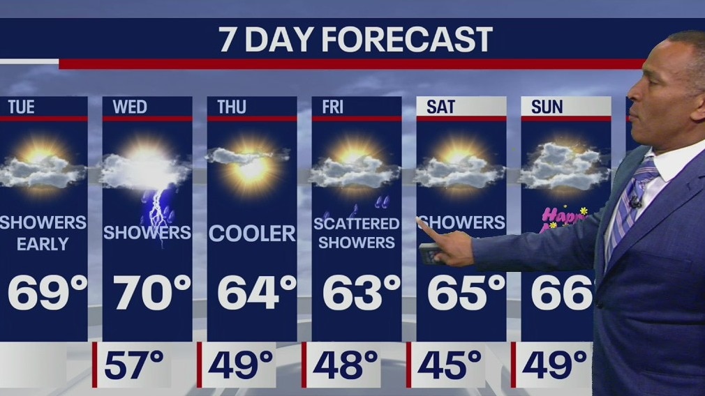 Meteorologist Mike Woods says cloudy skies and patchy showers will make way for sun. Expect a high of 69 degrees.