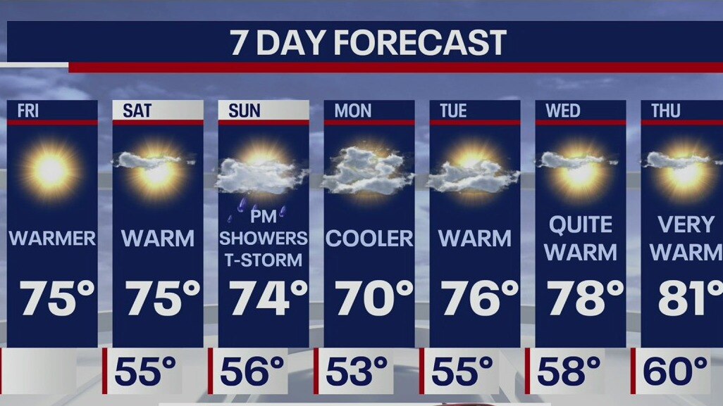 Meteorologist Mike Woods says temperatures are in the 50s but going up to 75 degrees for a high. Expect sunny skies and a nice, warm day ahead.