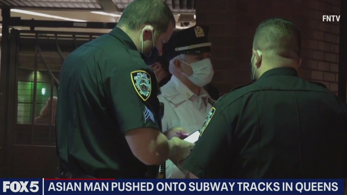 The NYPD is looking for the person who pushed an Asian man onto the subway tracks in Queens on Monday morning. The victim was treated for a cut to his head. Police are looking into whether it was a hate crime.