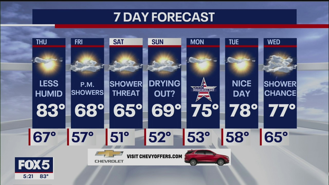 Showers and strong, possibly severe thunderstorms early before the skies give way to partly cloudy skies and a gorgeous day tomorrow.