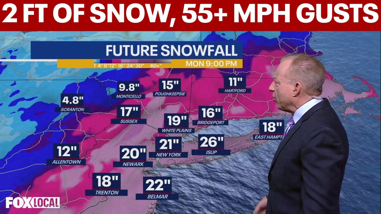 NYC blizzard Sunday AM update: 2 ft of snow, 55+ mph winds expected