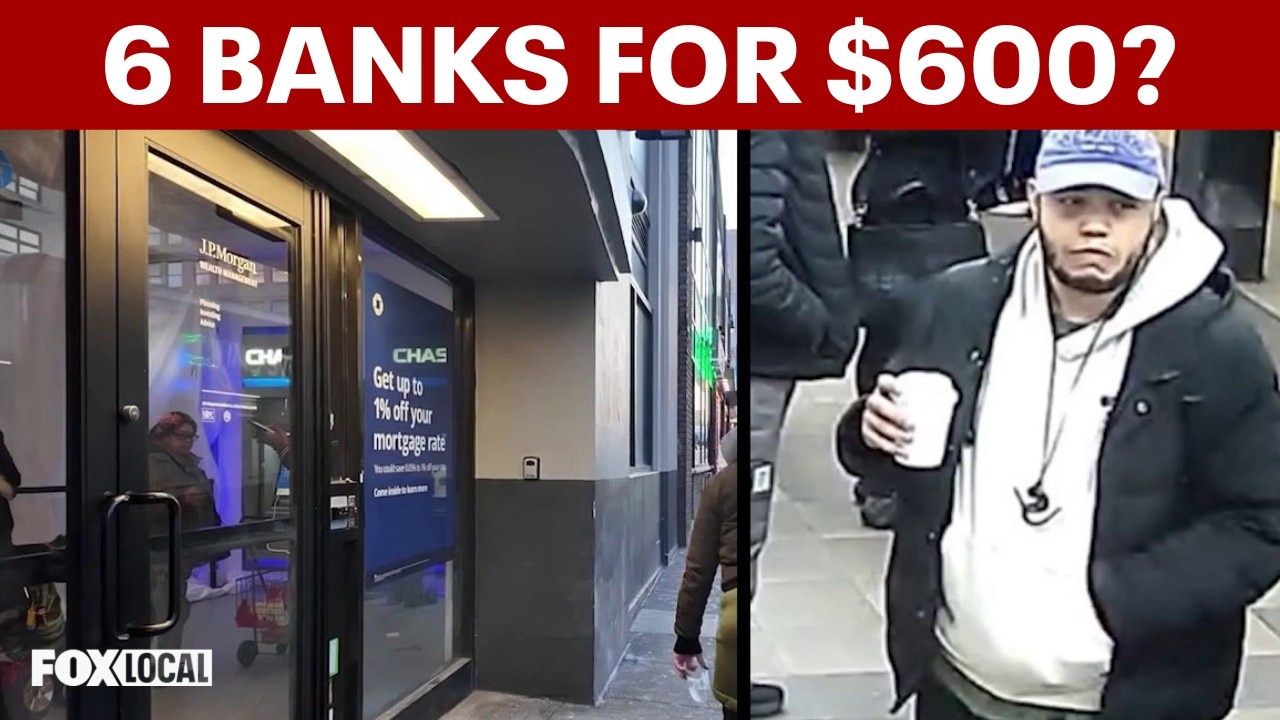 Police say a man went on a robbery spree targeting six Chase banks across New York City, passing threatening notes to tellers each time. Investigators say he only got about $600 total before U.S. Marshals tracked him down and arrested him in Newark.