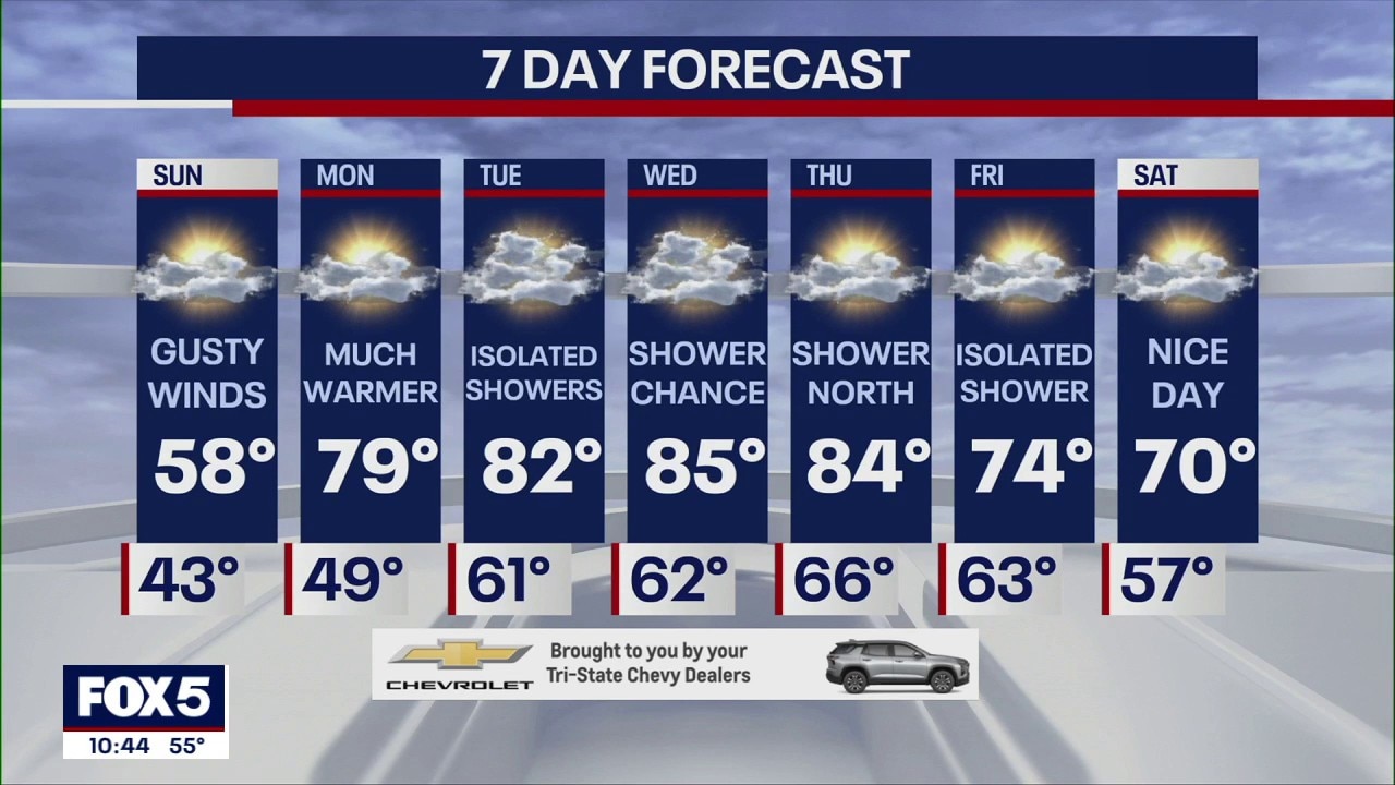 A much warmer Sunday will see temperatures in the high 70s ahead of an 80-degree week.