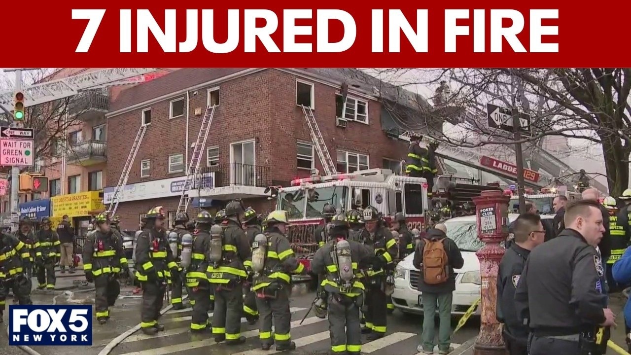 Seven civilians are being evaluated, two of them in critical condition, due to a fire near Flushing, Queens.