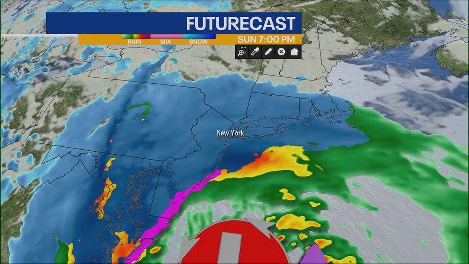 The storm is expected to start as rain early Sunday morning, before turning into a wintry mix, then snow.