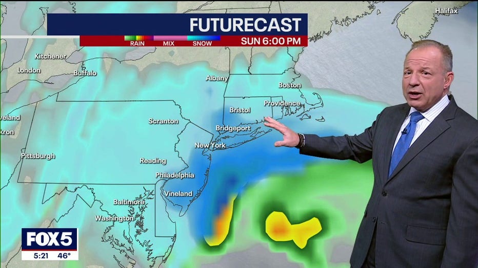 FOX 5 NY's chief meteorologist Nick Gregory pointed out that some snow could hit the city and Long Island this Sunday afternoon into evening.